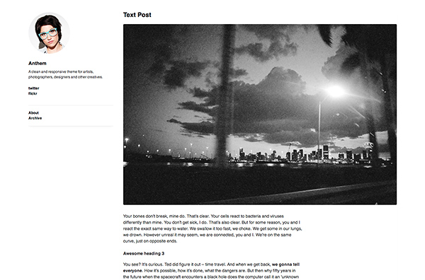 Anthem takes full advantage of the new custom post formats in WordPress 3.1. Whenever you create a new post, choose an appropriate post format, and follow the instructions below.